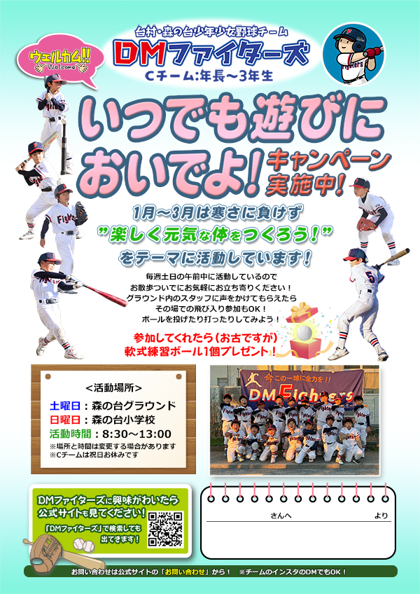 お子様の体づくりと可能性を探る場所の一つとして、ぜひDMファイターズをご活用ください!